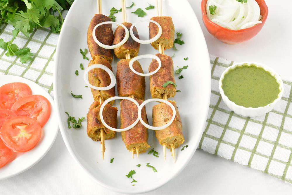 Instructions Mix all the ingredients for the kebabs (barring oil) into a smooth mixture. Meanwhile, soak the wooden skewers (if using) in a glass of w...