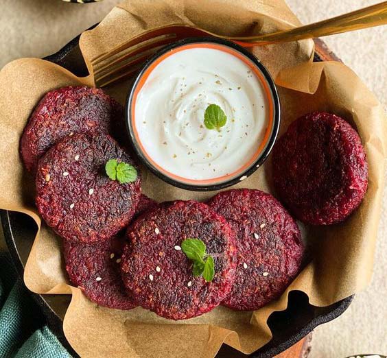 Instructions Take a bowl and put the grated beetroot, the tofu followed by garlic, amchoor, chaat masala, rock salt and anardana. Mince with your hands & make...