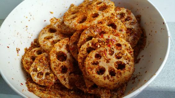 Instructions Clean behind (lotus stem)and boil them in water for 5 minutes then strain and dry them on a kitchen towel Heat oil and let it cool Mix all the dry ...