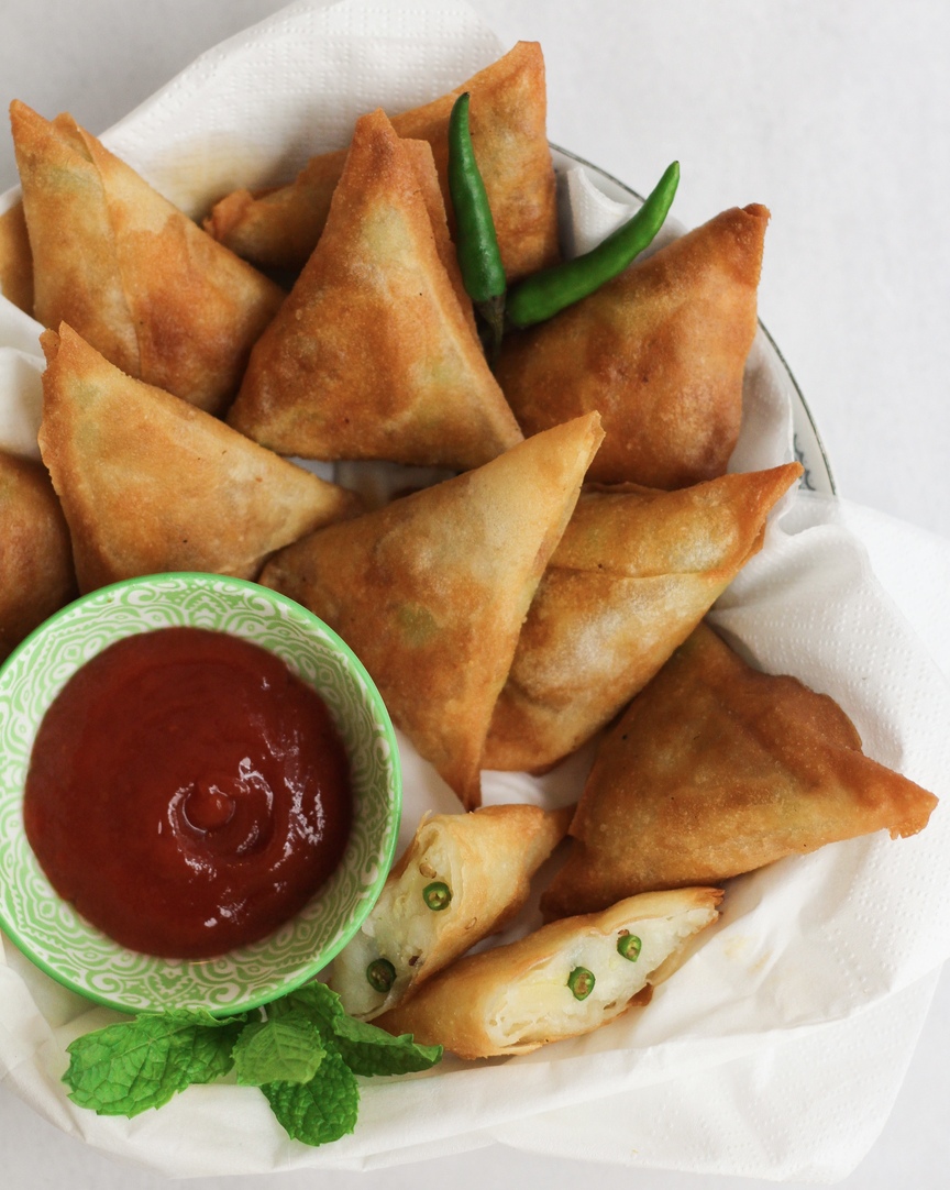 Instructions Prepare the filling by mixing the (cooled) boiled, peeled, mashed potato, cheese, chilies, chaat masala and salt until well incorporated. Make a flou...