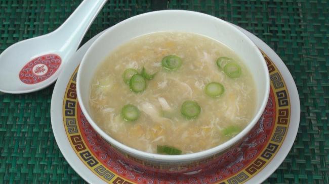 Instructions Heat oil in a heavy bottomed vessel, add spring onion whites and ginger and saute for a mt. Add the shredded chicken and saute for a mt. Add cream styl...